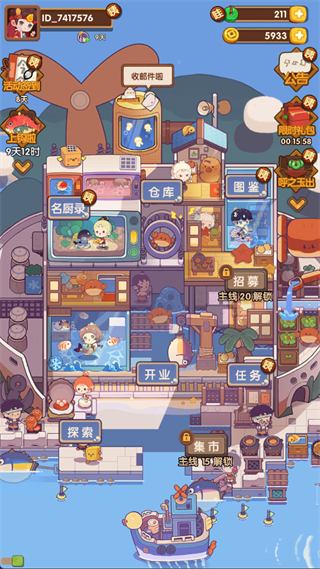 3、解锁「开业」功能后,可开启餐厅营业,通过售卖菜品赚取金币,同时后续还能解锁招募、集市等更多玩法。