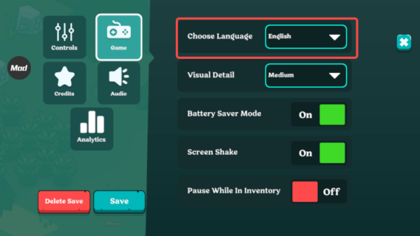 2. 在设置菜单中找到“Game”分类,点击“Choose Language”选项;