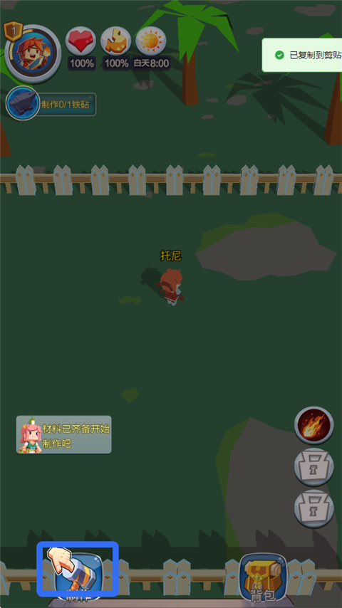 2. 获得木材后,点击界面中的“制作”按钮进入合成菜单。