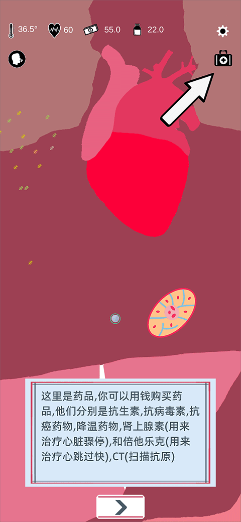 4. 药品系统允许玩家使用财富购买各类治疗道具,辅助免疫作战。