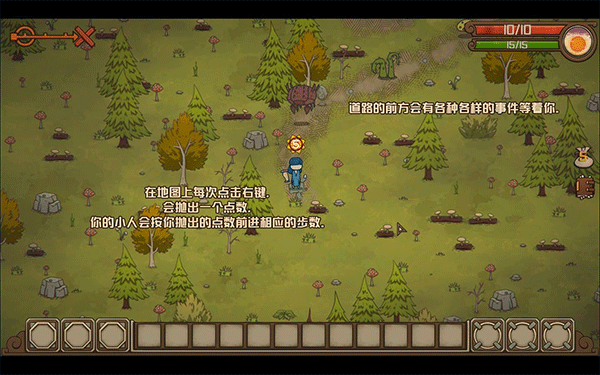 探索过程中会消耗体力,体力归零将触发负面事件,因此务必及时补充食物维持状态。此外,地图中还散落着众多趣味小故事等待收集。