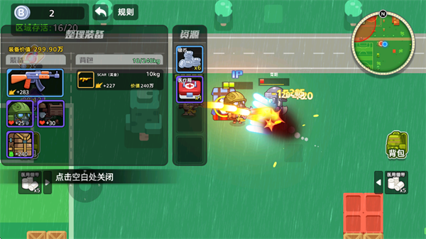 1、游戏开局前可以在备战界面调整我们的武器装备,高品质的武器可以增加伤害,防具可以减伤,背包可以提高可携带物品容量。