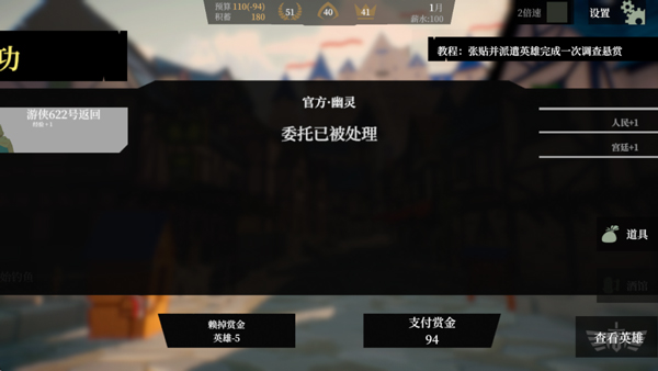 1. 作为卫兵,你的核心职能类似于“快递驿站管理者”:当悬赏(快递)抵达,你需要将其分派给手下佣兵执行。不同等级任务收益不同——1级任务赚4金币,2级赚8金币,3级可赚12至15金币。切忌设置过高赏金,否则佣兵会觉得性价比低而拒绝接单。合理运营下,前三天即可积累数百金币作为启动资金。