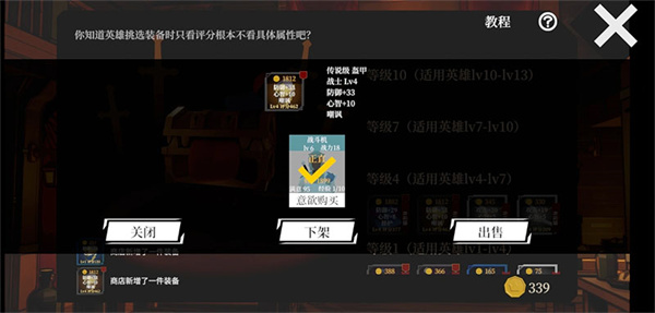 2. 装备评分——只要新装备评分高于当前装备,且资金充足,几乎必买(此为最高优先级);