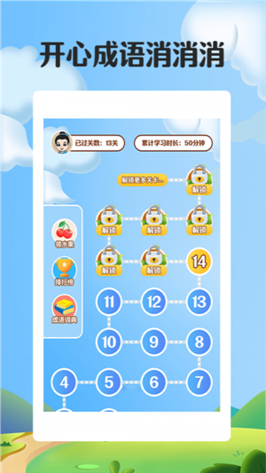 2. 权威成语库+生动解析:游戏收录大量经典成语,源自权威字典,并配以趣味动画和通俗易懂的释义,帮助玩家深入理解成语含义;