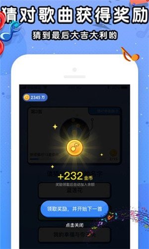 1、趣味十足的猜歌玩法,系统自动出题,回答出歌名成为挑战