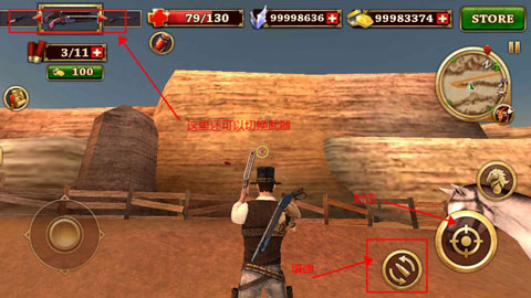 3、枪火西部破解版拥有弹药数量的限制,你无法无限开枪因此要时刻注意自己的残弹状况。