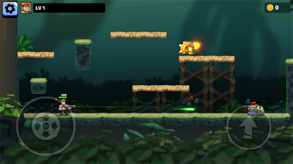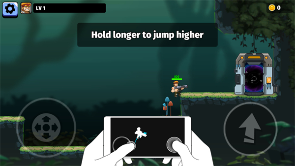 1、移动左侧摇杆即可控制角色的方向,右侧按钮控制角色跳跃,长按跳跃键能让角色跳的更高。