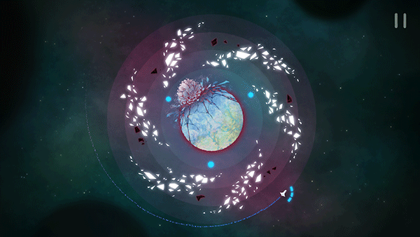 游戏以“环绕—躲避—收集”为核心循环,玩家驾驶喷气式飞行器围绕星球飞行,需灵活应对从天而降或自地心迸裂的陨石障碍。通过精准操控产生离心力,远离中心区域以拾取漂浮的记忆碎片。每章终末设有句子排序环节,将碎片重组为完整语句,揭示作者关于生活、记忆与存在的诗意表达。