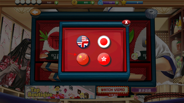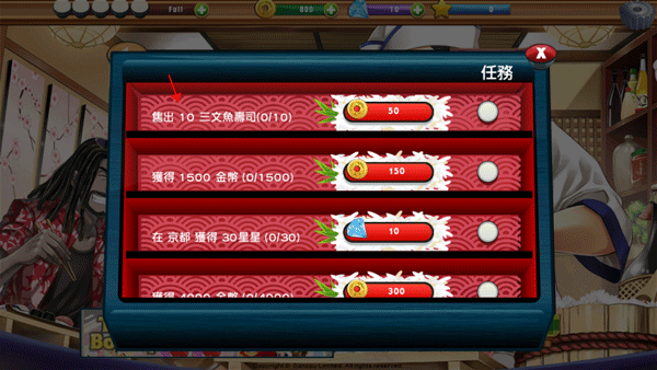 2. 游戏以城市为章节划分,首关位于日本京都,不同地点对应不同寿司菜单。