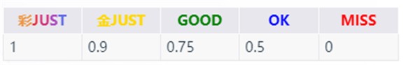 2. 判定系统精细分级:彩JUST、金JUST、GOOD、OK 与 MISS,直接影响得分与连击表现。