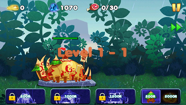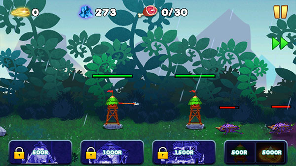 - 屏幕下方为可建造的防御塔类型,上方持续增长的数字代表当前可用资金,用于部署或升级防御设施。