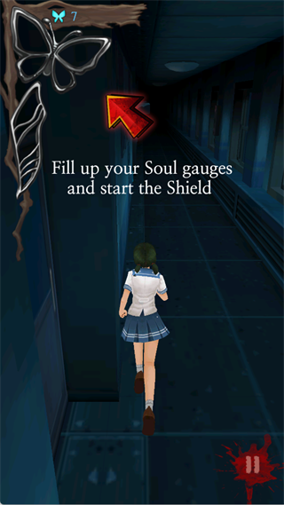 收集蝴蝶:散布于走廊中的蓝色蝴蝶是游戏核心资源,可用于购买道具、升级属性及解锁新角色。