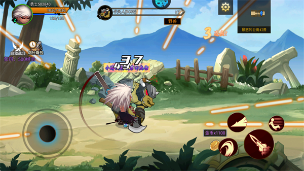 1、游戏采用任务驱动+横版闯关模式,操作方式类似经典格斗游戏:左侧虚拟摇杆控制角色移动,右侧按钮负责普通攻击与技能释放。