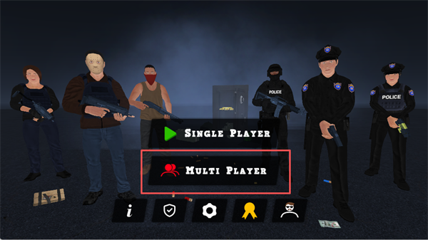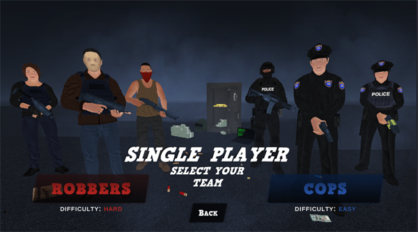 1. 进入单人模式后,选择扮演强盗(ROBBERS)或警察(COPS)阵营,开启不同视角的战术旅程。