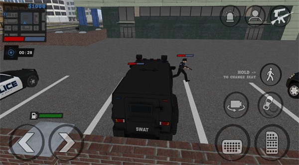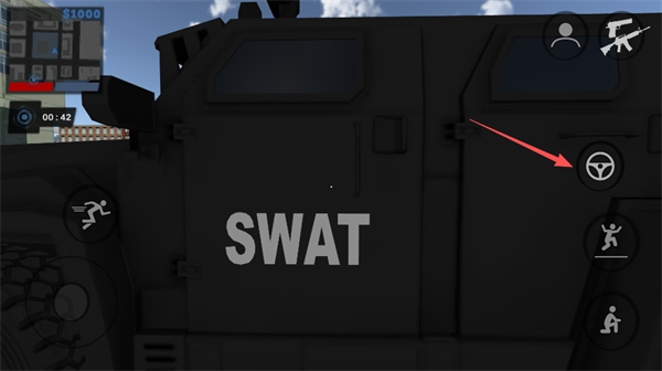 5. 靠近SWAT特警车辆时,点击方向盘图标即可进入驾驶位,随时调用强力载具支援行动。