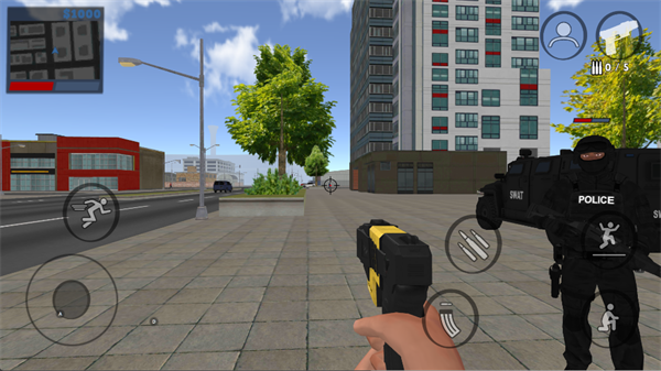 正义对决3警察与强盗是一款融合单人剧情与多人联机的3D开放世界第一人称动作射击游戏,以“警匪对抗”为核心玩法,带来沉浸式战术体验。玩家可自由选择加入警察或强盗阵营,双方各有专属任务目标——强盗需策划并执行各类抢劫行动,而警察则要阻止犯罪、维护秩序。在单人模式中,你不仅能独立作战,还能指挥AI队友协同完成复杂战术指令;而在多人模式下,更可创建私人房间,邀请好友组队挑战从小型便利店到大型银行、赌场等高难度任务,展开紧张刺激的正邪对决。