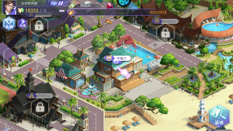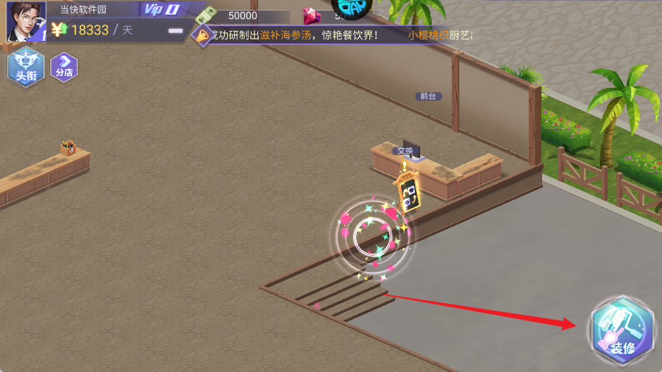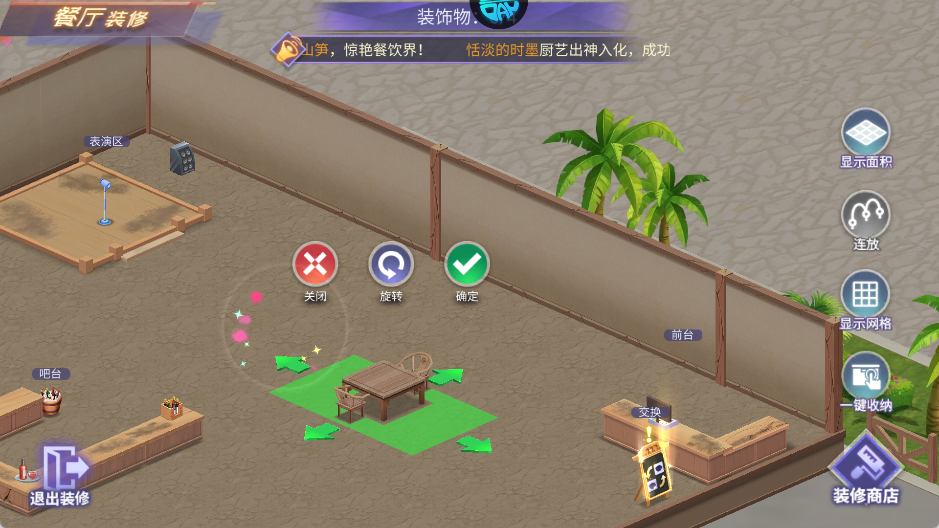 4、点击右下角“装修”按钮,开始布置餐厅基础环境。