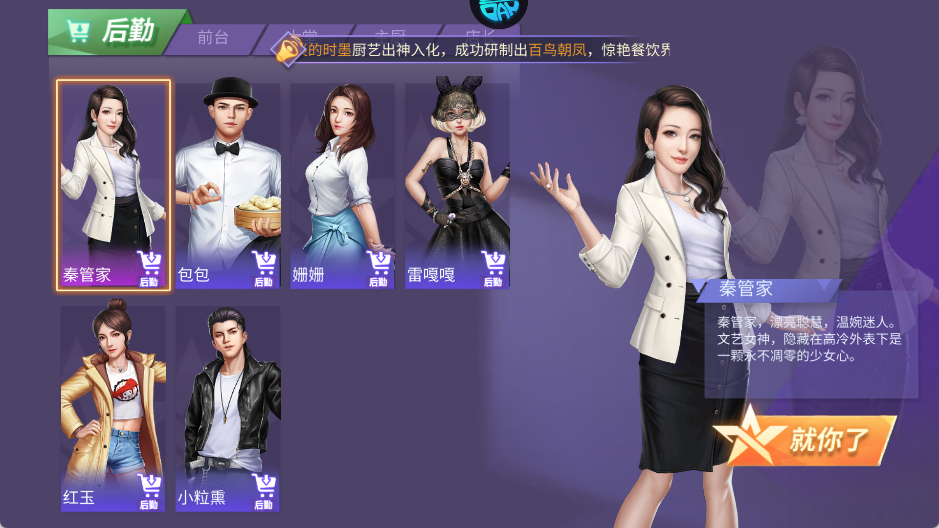 8、根据每位明星的特长,将其分配至厨师、服务员或迎宾等岗位,最大化团队效能。
