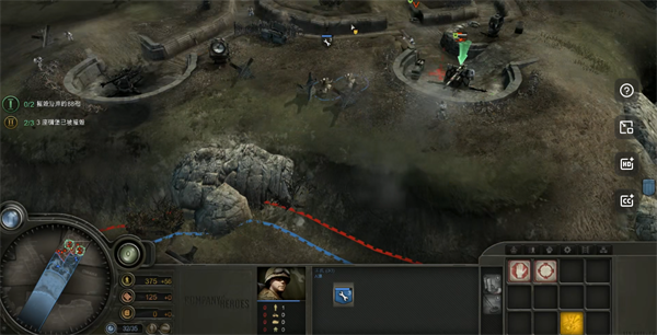 开局难度较低,重点在于合理部署兵力。建议在兵力接近满编时拉上狙击手,可大幅降低右侧滩头清理难度。随后集中火力炸毁碉堡,采用“右钩拳”战术清除左侧滩头以获取勋章。务必占领并利用左侧88炮,配合狙击手探视野,精准炮击近距离碉堡。优先摧毁地图上方的一门88炮完成主线任务,再击毁另一门即可过关。