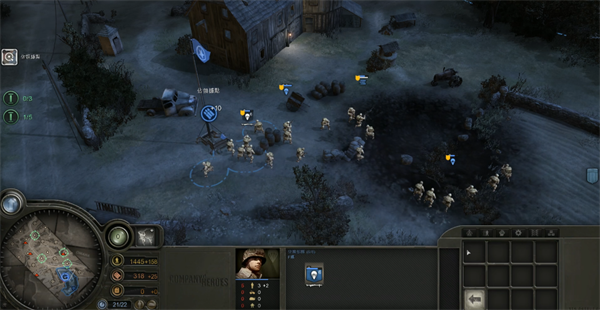 本关起可使用迫击炮进行隐蔽打击——NPC不会对未暴露的迫击炮阵地作出反击(但进入其射程仍会遭报复)。初始仅有两队不满编空降兵,补员后采用“一队吸引火力、一队侧翼包抄”的经典战术。注意部队图标旁的盾形标识:绿色表示有利地形(如建筑、工事),黄色为一般,红色则代表暴露风险,应尽量让部队处于绿色状态。勋章任务“消灭巡逻队”可通过右下角弹药点获取两门反坦克炮轻松完成。建议从右侧推进,夺取坠机点的迫击炮以降低伤亡;左上坠机点则提供火箭筒与重机枪。最终在靠近公路(非最上方)的防空炮附近构筑防线,切断交通线即可完成任务。