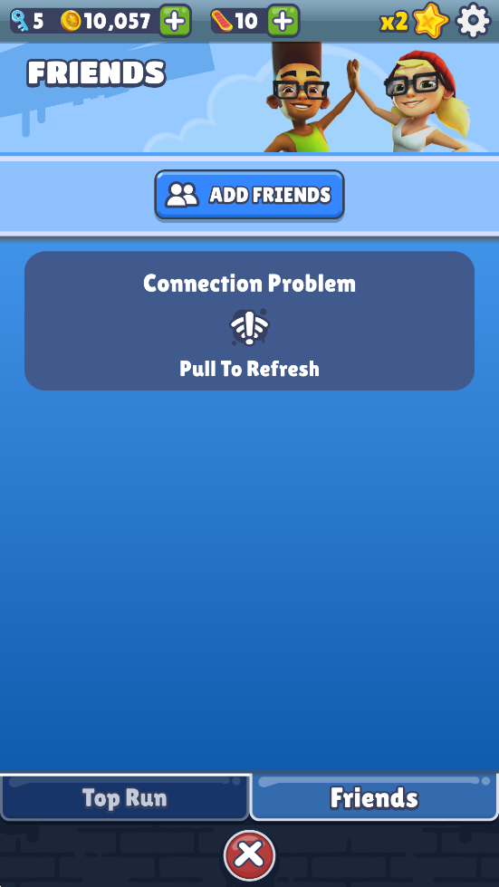 1、在进入游戏之前,我们首先需要开启能够加速地铁跑酷国际服的游戏加速器,然后进入地铁跑酷Subway Surfers国际版后,此时我们可以看到网络是连接的,点击右上角的齿轮;