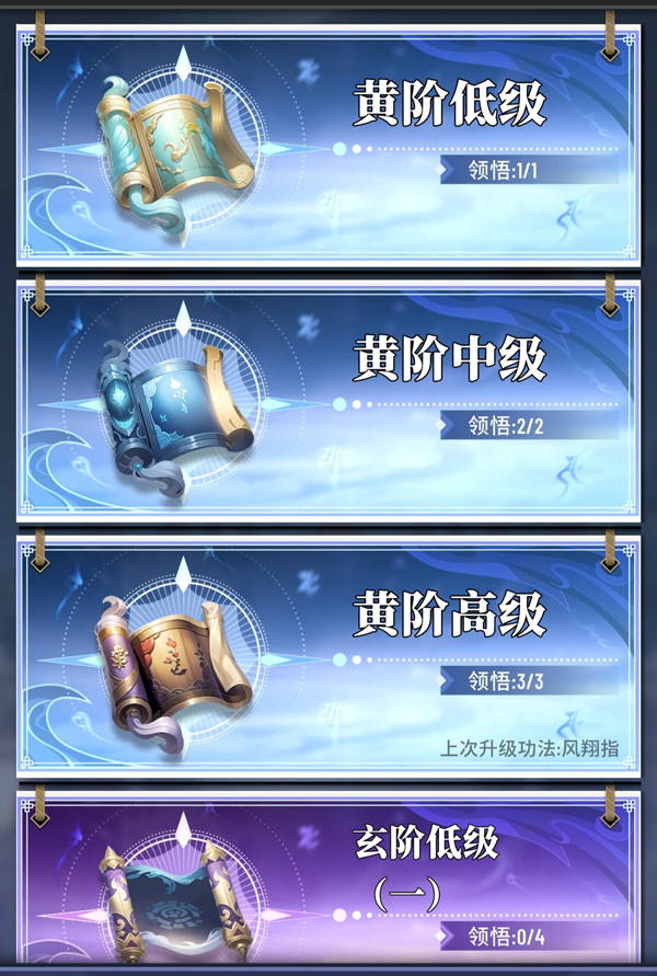 功法秘卷:用于小阶段突破,来源包括礼包、宗门商店及各类活动。
