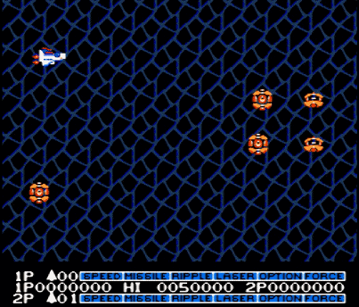 这款游戏一经发售便引起了无数玩家们的注意,游戏不仅仅有横向过关模式,更别出心裁的出现了纵向过关模式。加上出色的背景设计与好听的音乐,各有特色的BOSS战,当时的游戏厂家还引入了能量升级系统,通过获取的红色小方块数量,由玩家自行选择升级模式。当时这种模式可是颠覆了玩家对武器升级的概念,放到现在来看,该升级系统放到现在也并不落后。