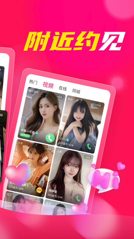 智能视频聊天:系统基于兴趣标签、地理位置、活跃时段等维度精准推荐,支持一键发起高清视频/语音对话,实时互动无延迟,轻松开启走心交流。