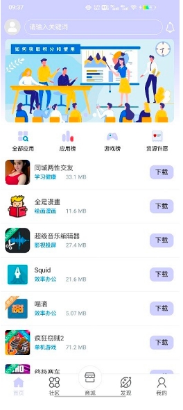 首页采用焦点轮播+结构化分区设计,清晰呈现积分获取路径与使用规则;“全部应用”与“游戏榜单”双栏并列,同步聚合应用宝等主流渠道热门内容,并支持按评分、热度、更新时间多维排序;资源许愿功能前置展示,让用户第一时间表达需求,真正实现“你提需求,我来实现”。