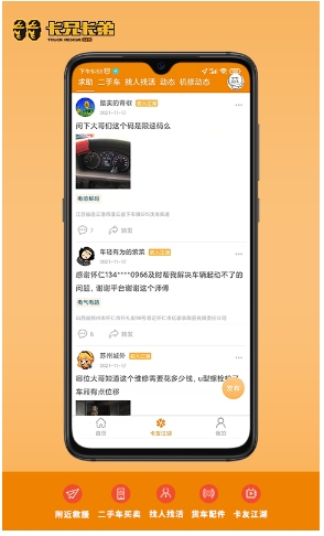 内置「卡友江湖」社区,支持一键发布求助帖(如急寻配件、临时搭伙、路况预警),百万卡友实时响应;平台持续接入物流运输、货运司机、汽修技师等岗位招聘信息,尤其为短期失业的4G行业从业者提供合规、高匹配度的驾驶类就业机会。