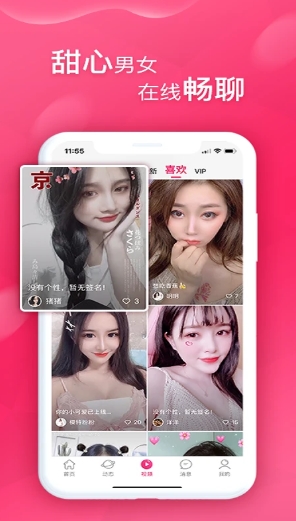 甜心——专为年轻群体打造的高颜值、强互动、重真实的智能社交平台。在这里,脱单不是等待缘分,而是主动开启一场有温度、有画面、有共鸣的双向奔赴:真人认证保障真实,1对1高清视频直连心动对象,智能匹配精准锁定契合灵魂,让每一次相遇都更高效、更自然、更值得期待。