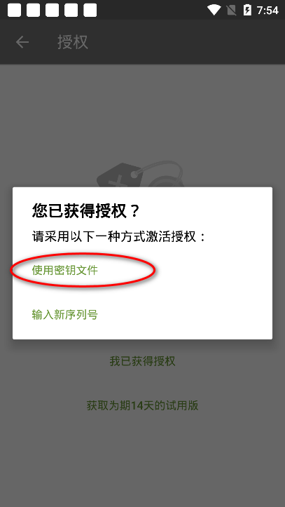2. 选择「密钥文件激活」,从本地存储导入本站提供的正版key文件(.drw格式)