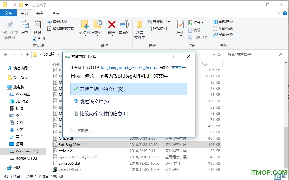 3. 将其复制粘贴至软件安装根目录(默认路径:C:\Program Files (x86)\方方格子),选择替换原文件;