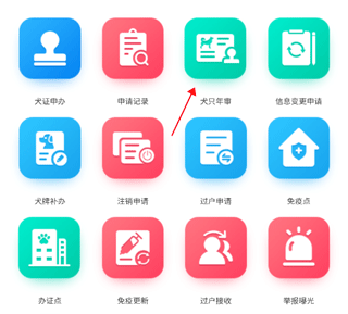 - 选择城市后,点击“犬只年审”选项,按提示完成后续流程即可。
