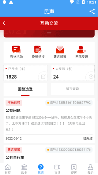 3、若对公共服务或城市管理存在不满,可通过“民声”板块提交反馈,您的声音将被认真倾听并跟进处理。