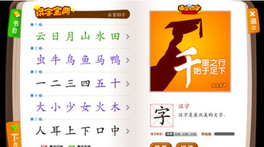 - 整书循环复习机制:1200个汉字分为4本书(每本300字),完成一整本书后,后续学习即自动转为对该书内容的复习,且优先复现掌握最弱的汉字。