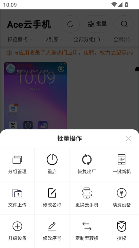 4、进入主界面后,还可启用批量操作功能,统一管理多个云手机实例;