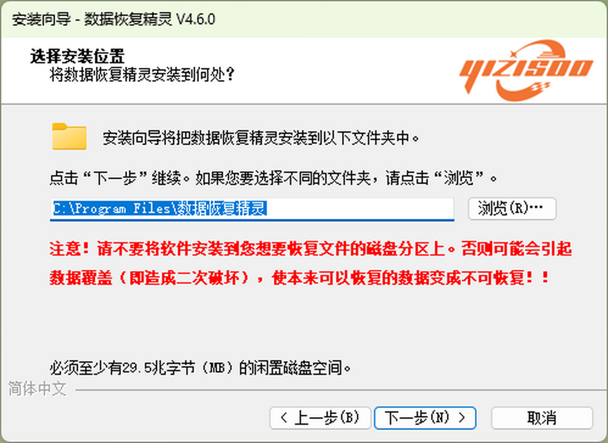 - 安装注意:切勿将软件安装到待恢复数据所在的分区,避免覆盖原始数据。