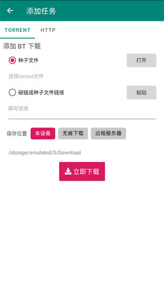 2、选择本地种子文件,或在弹出窗口下方直接粘贴磁力链接。