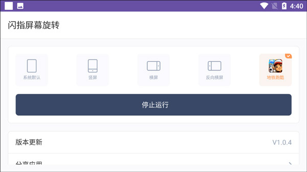 5. 如需关闭横屏,只需返回本软件,点击“停止运行”即可恢复默认屏幕方向。
