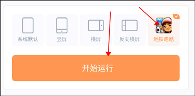 1. 安装并打开闪指屏幕旋转app,点击主界面中的“地铁跑酷”选项,随后点击“开始运行”;