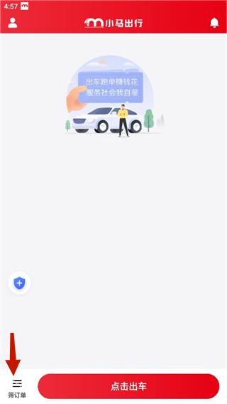 1、打开小马出行司机端app,点击底部“出车”选项。