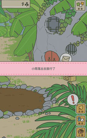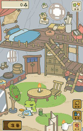 旅行期间,可在屋内桌上预先放置物品,青蛙返家后若未被及时查看,会自动取用桌上的物资再次出发。