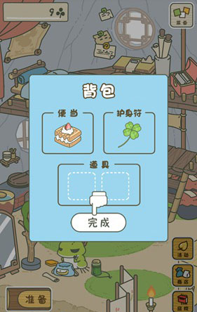 进入游戏后,你将照看一只热爱旅行的小青蛙。出发前需为其准备便当、护身符及道具,其中食物是基础保障。