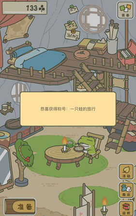 首次建议购买10三叶草的便当,随后返回小屋,点击“准备”按钮为青蛙打包行李。