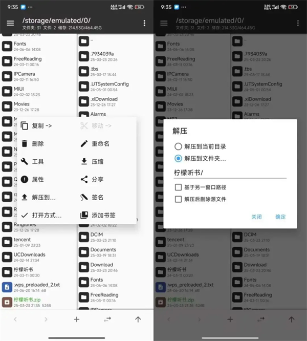 长按任意压缩包(ZIP/RAR等),即可快速解压;同样支持选中多个文件一键打包压缩,操作简单高效。