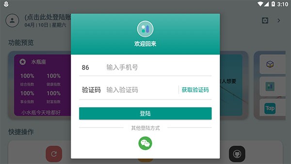 2. 在首页左上角点击头像图标,可通过手机号+验证码或微信授权方式完成一键登录。