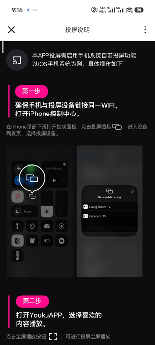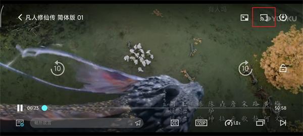 4、如需投屏,请点击屏幕顶部带有信号图标的按钮(需确保手机与投屏设备处于同一Wi-Fi网络)。