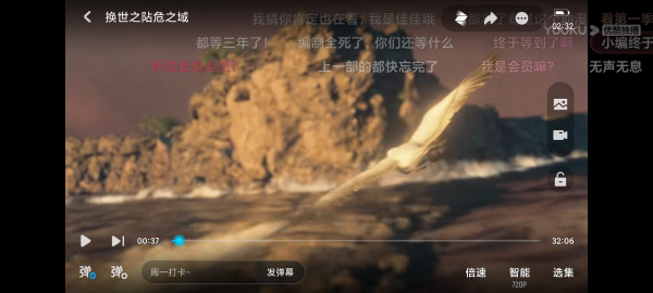 3、点击“弹”字图标旁带齿轮的设置按钮,可进入弹幕设置界面,自由调节透明度、速度、显示区域等参数。